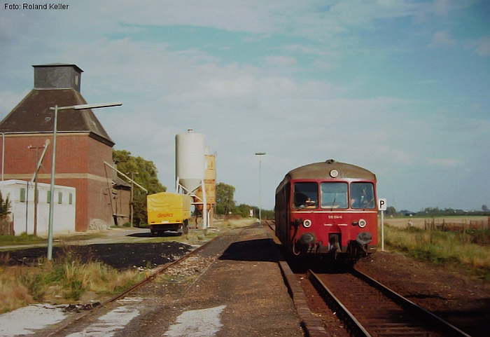 Mit meinem betagten VW-Käfer düse ich an dem betagteren Akkutriebwagen